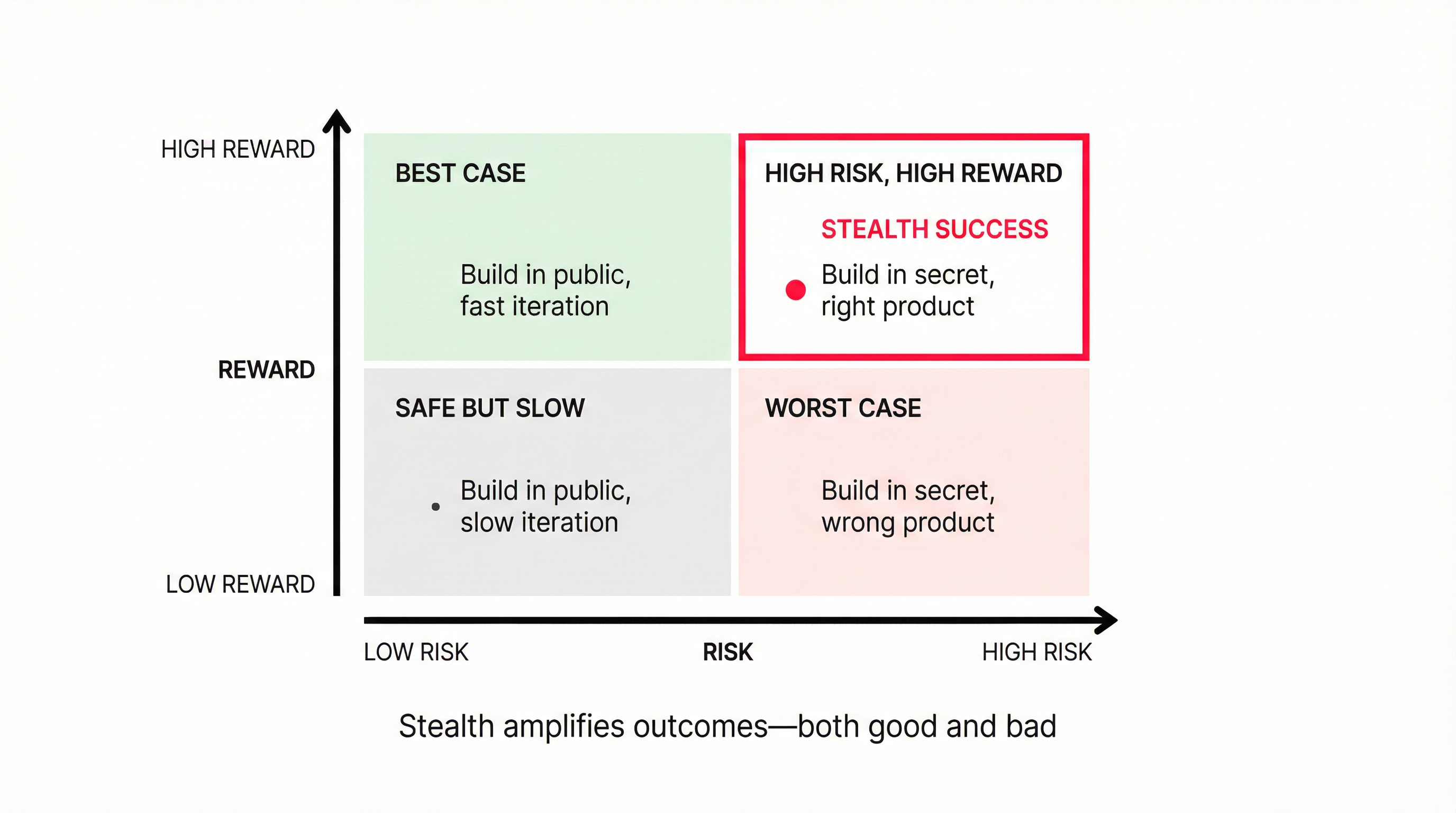 - →Stealth is underrated. Everyone says build in public. But building in secret has real advantages.